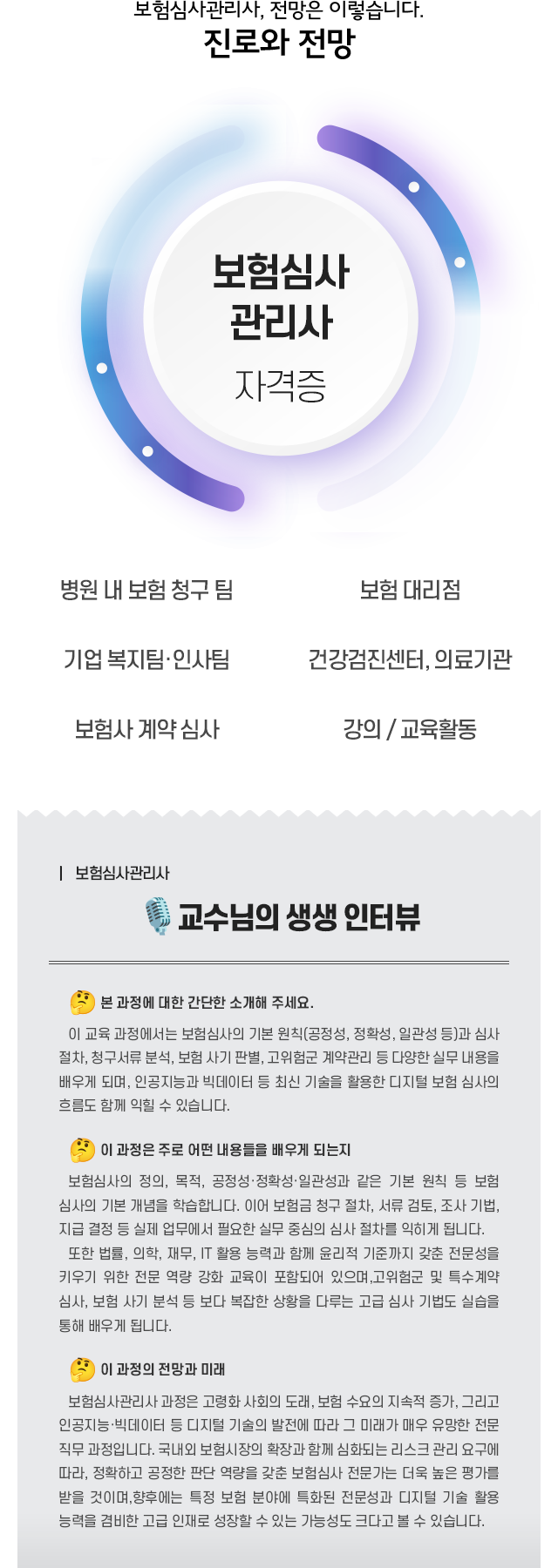 1. º¸Çè½É»ç°ü¸®»ç 1±Þ °úÁ¤ÀÇ ¸ñÇ¥´Â º¸Çè±Ý û±¸¿Í °è¾à ½É»ç¿¡ ÇÊ¿äÇÑ Àü¹® Áö½Ä°ú ½Ç¹« ¿ª·®À» °®Ãá ÀÎÀ縦 ¾ç¼ºÇÑ´Ù.