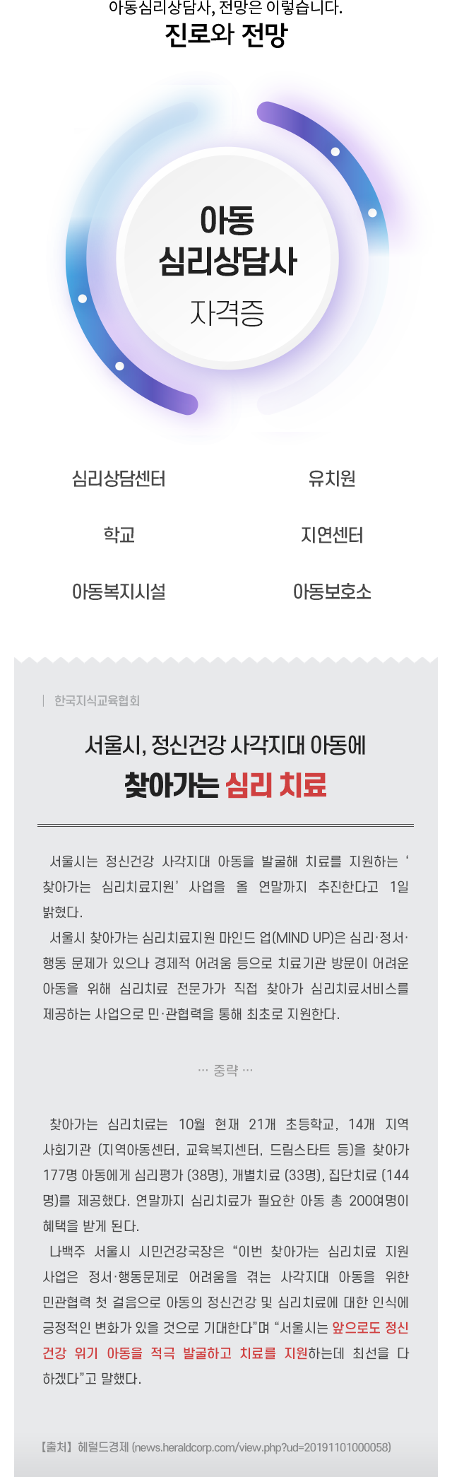 ¾Æµ¿½É¸®»ó´ã»ç Ȱµ¿À» À§ÇÑ ÀÚ°ÝÃëµæ°úÁ¤À» ÅëÇØ »ó´ãÀ̷аú Áö½ÄÀ» ½ÀµæÇϰí, °¢ ¹®Á¦À¯Çüº° ¾Æµ¿¹ß´ÞÀÇ ¿ø¸®¿Í ´Ù¾çÇÑ ±â¹ýÀÇ È°¿ë¹æ¹ýÀ» üµæ½ÃÄÑ ¾Æµ¿½É¸®»ó´ãÀڷμÀÇ ±âÃÊÀûÀÎ Á÷¹«¼öÇà ´É·ÂÀ» ¹è¾çÇÏ´Â °ÍÀ» ¸ñÇ¥·Î ÇÕ´Ï´Ù.