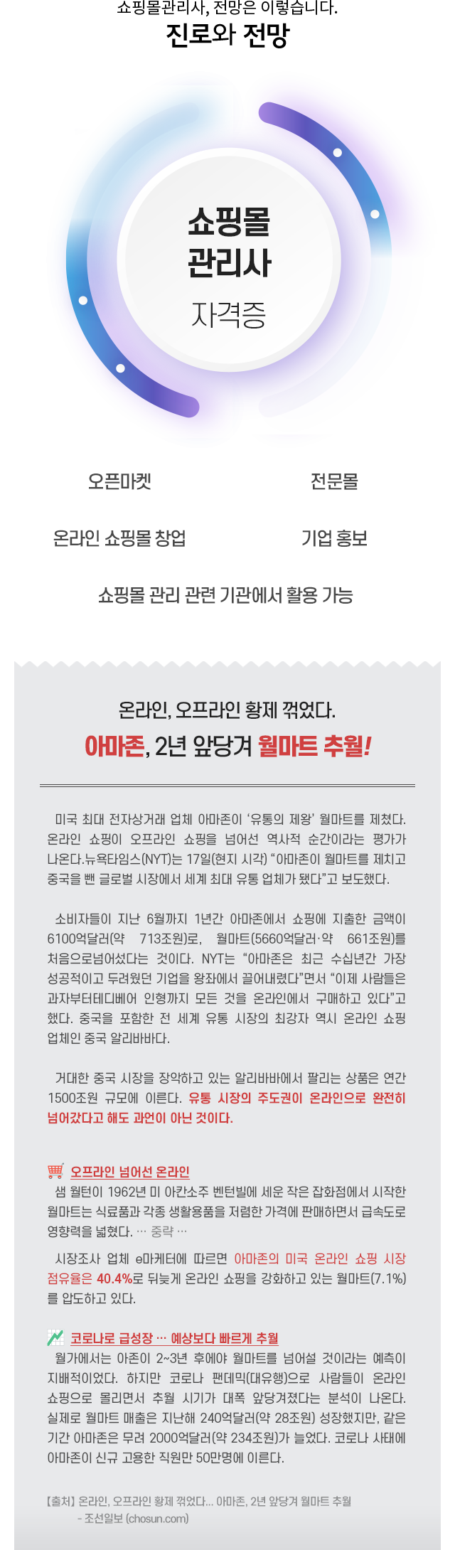 ¿Â¶óÀÎ ¼îÇθô â¾÷¿¡ ÇÊ¿äÇÑ ¾ÆÀÌÅÛ ¼±Á¤, ¸¶ÄÉÆÃ, ¼ÒºñÀÚ °ü¸®¿¡ ´ëÇÑ Àü¹ÝÀûÀÎ ±³À°À» ÅëÇØ ¿Â¶óÀÎ ¼îÇθô °ü·Ã ¾÷¹« ¼öÇà ¹× Áö½Ä ½ÀµæÀ» ¸ñÇ¥·Î ÇÕ´Ï´Ù.
